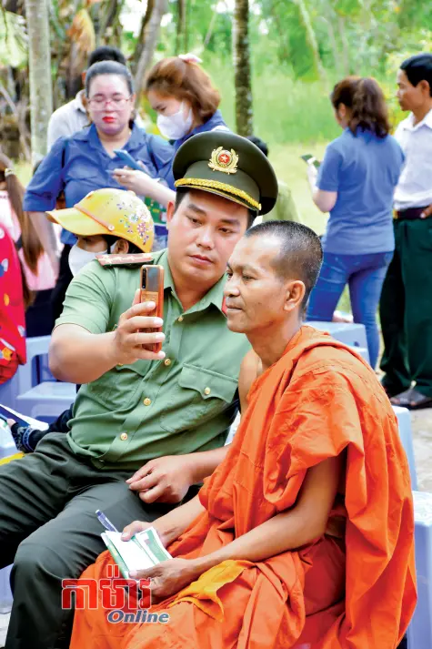 កងកម្លាំងនគរបាលជំនួយព្រះតេជគុណ Phạm Minh Thắng ពីការប្រើប្រាស់ឌីជីថលលើទូរសព្ទឆ្លាតវៃ។