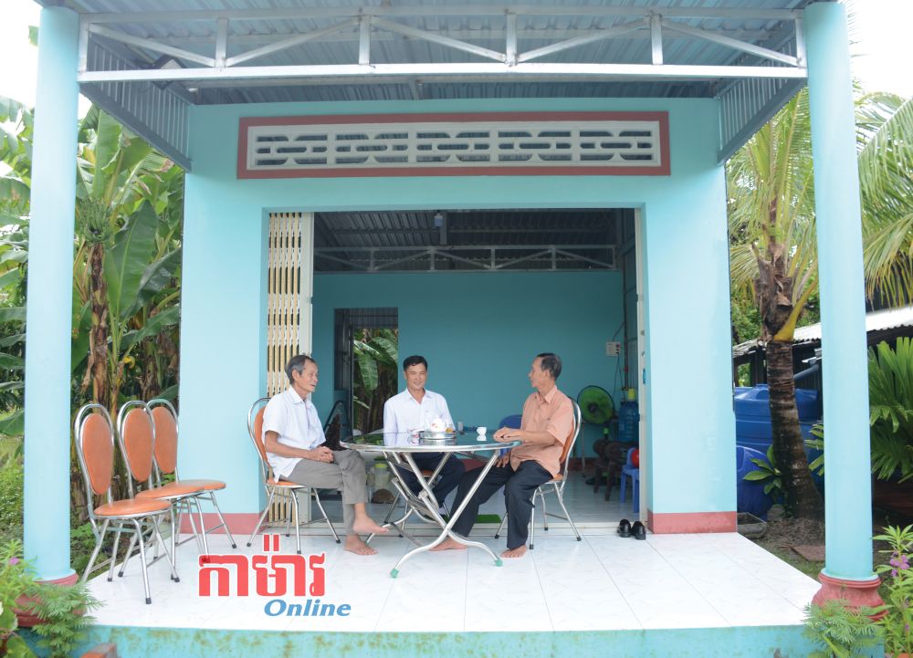 លោក Trần Văn Nuối (អ្នកអង្គុយកណ្តាល) ប្រធានគណៈកម្មាធិការរណសិរ្សភូមិលេខ ៦ បានអញ្ជើញទៅសួរសុខទុក្ខលោក Nguyễn Văn Quang ដែលជាគ្រួសារទទួលបានការឧបត្ថម្ភសាងសង់ផ្ទះមួយខ្នងក្រោមកម្មវិធីលុបបំបាត់ផ្ទះបណ្ដោះអាសន្ន និងផ្ទះទ្រុឌទ្រោម។