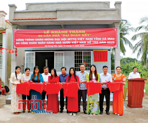 គណៈអចិន្ត្រៃយ៍នៃគណៈកម្មាធិការរណសិរ្សមាតុភូមិ Việt Nam ខេត្ត Cà Mau និងភូមិភាគអញ្ជើញចូលរួមកាត់ខ្សែបូសម្ពោធផ្ទះមហាសាមគ្គីនៅឃុំ Hưng Hội។
