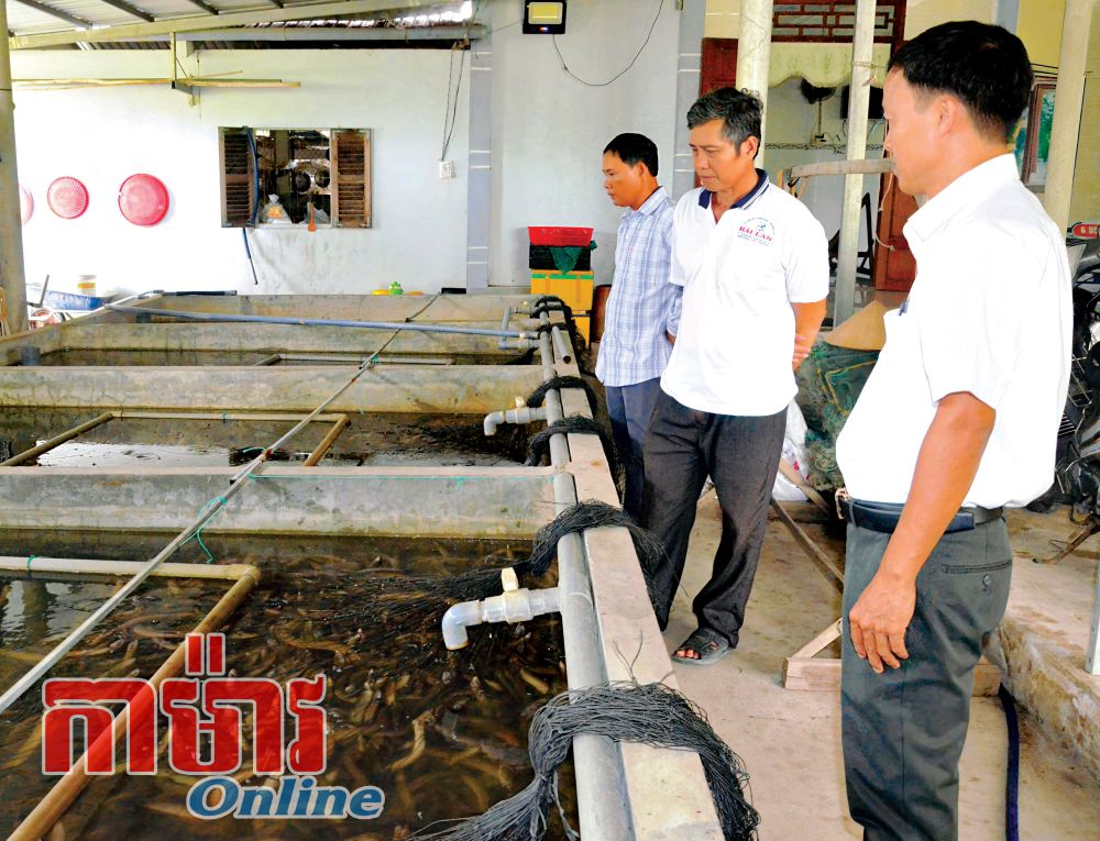 កម្មាភិបាលសមគមកសិករឃុំ Hồng Dân អញ្ជើញទស្សនាទម្រង់ចិញ្ចឹមអន្ទង់គ្មានភក់របស់គ្រួសារលោក Danh Dương នៅភូមិ Trèm Trẹm។