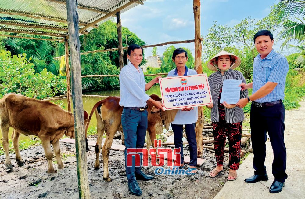 ក៏នៅភូមិលេខ ៩ A ដែរ សមាគមកសិករឃុំ Phong Hiệp ទើបតែផ្តល់គោពូជមួយគូដល់គ្រួសារអ្នកមីង Lê Thị Thu Nương យោងតាមកម្មវិធីទទួលជួយឧបត្ថម្ភ បង្កើតមុខរបរចិញ្ចឹមជីវិតសម្រាប់គ្រួសារក្រ គ្រួសារងាយរងគ្រោះ។ គ្មានដីផលិត ពីមុនមកប្តីប្រពន្ធអ្នកមីង Nương ត្រូវទៅរកស៊ីនៅស្រុកឆ្ងាយ។ ពេលសុខភាពចុះខ្សោយ អ្នកទាំងពីរត្រឡប់មកស្រុកវិញ គេជួលអ្វីគឺធ្វើហ្នឹង ជីវភាពរស់នៅបានមួយថ្ងៃមួយពេលប៉ុណ្ណោះ។ ពេលទទួលបានគោពូជមួយគូ ប្តីប្រពន្ធអ្នកមីងសប្បាយចិត្តឥតឧបមា។