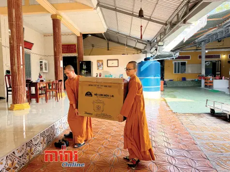 ភិក្ខុនីទាំងឡាយត្រៀមអំណោយសម្រាប់បញ្ជូនទៅចែកជូនមាមីងបងប្អូនតំបន់រងគ្រោះទឹកជំនន់។