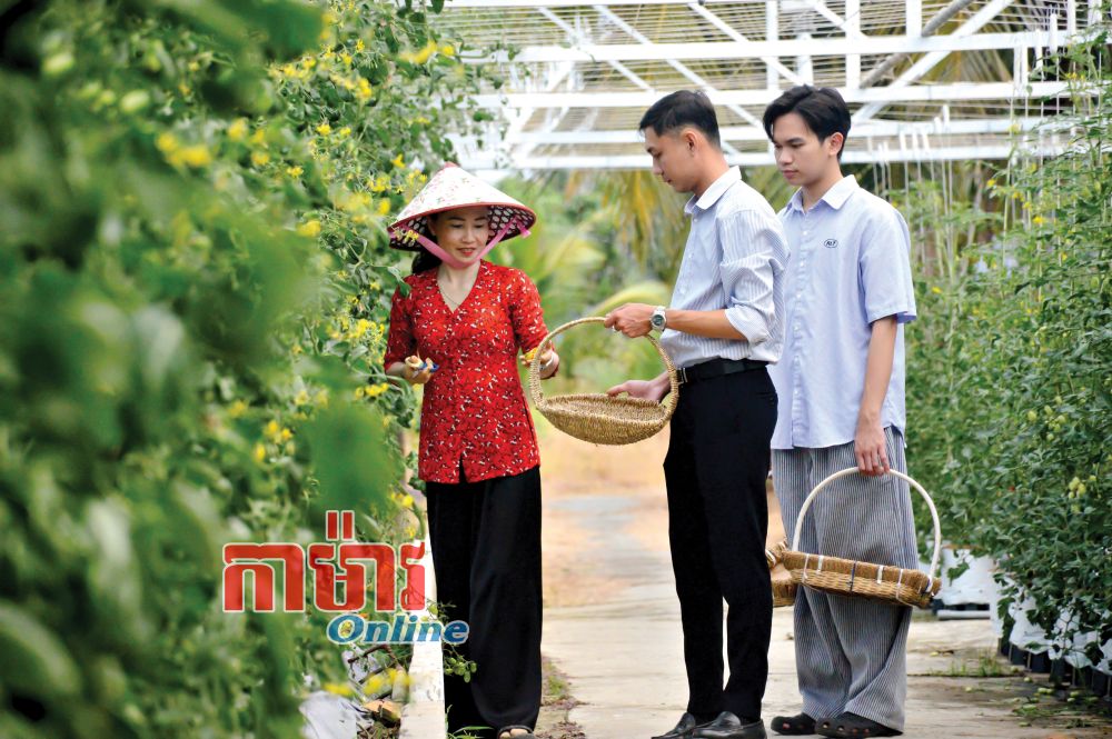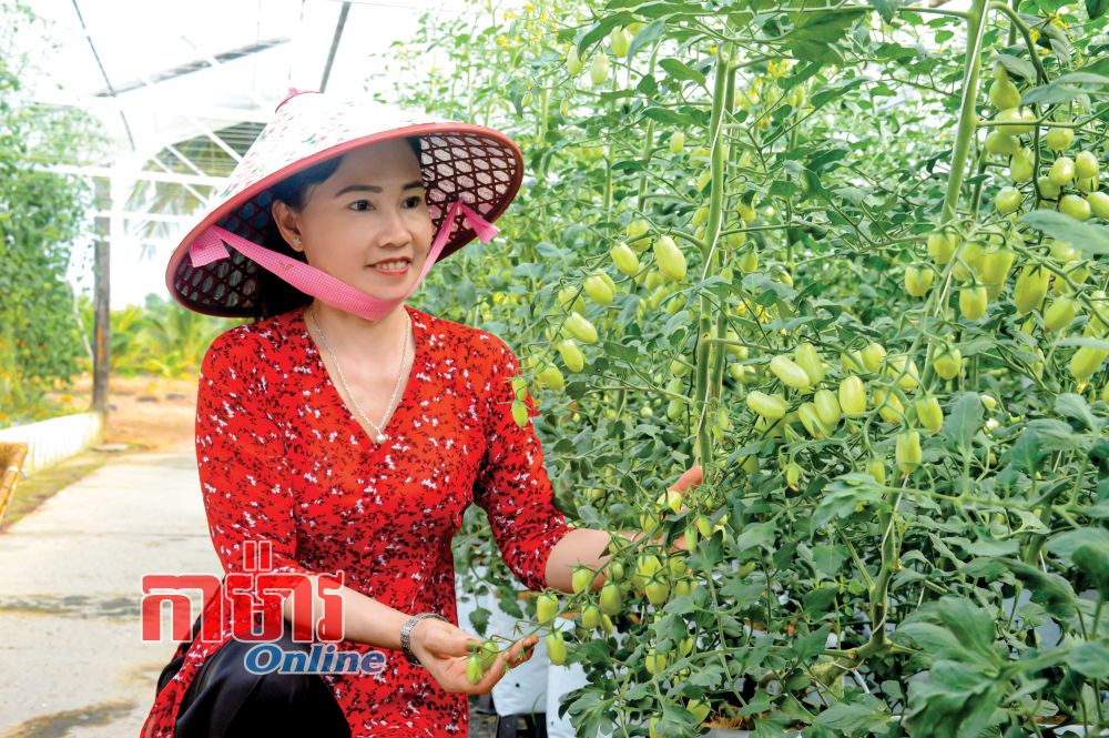 មិនឈប់ត្រឹមអ្វីដែលសម្រេចបាន ក្នុងឆ្នាំ ២០២៥ បងស្រីបានបន្តនាំយកដើមប៉េងប៉ោះឆឺរី ជាង ៩០០ ដើមពីទីក្រុង Đà Lạt មកដាំសាកល្បង។ បណ្តុំផ្លែប៉េងប៉ោះពណ៌ក្រហម លឿង និងបៃតងខ្ចី ដែលផ្លែជាកញ្ចុមយ៉ាងត្រចះត្រចង់ក្រោមពន្លឺថ្ងៃ បានក្លាយជាចំណុចទាក់ទាញថ្មីរបស់ចម្ការ។ ប៉េងប៉ោះផ្តល់ផលទុំឆ្នាំ មានរសជាតិផ្អែមឆ្ងាញ់ និងក្លិនក្រអូបស្រាល ដែលភ្ញៀវទេសចរជាច្រើនចូលចិត្ត។ មកទីនេះ ភ្ញៀវមិនត្រឹមតែបានទស្សនាប៉ុណ្ណោះទេ ប៉ុន្តែថែមទាំងបានកាត់ផ្លែ និងភ្លក់រសជាតិភ្លាមៗនៅនឹងកន្លែងទៀតផង។