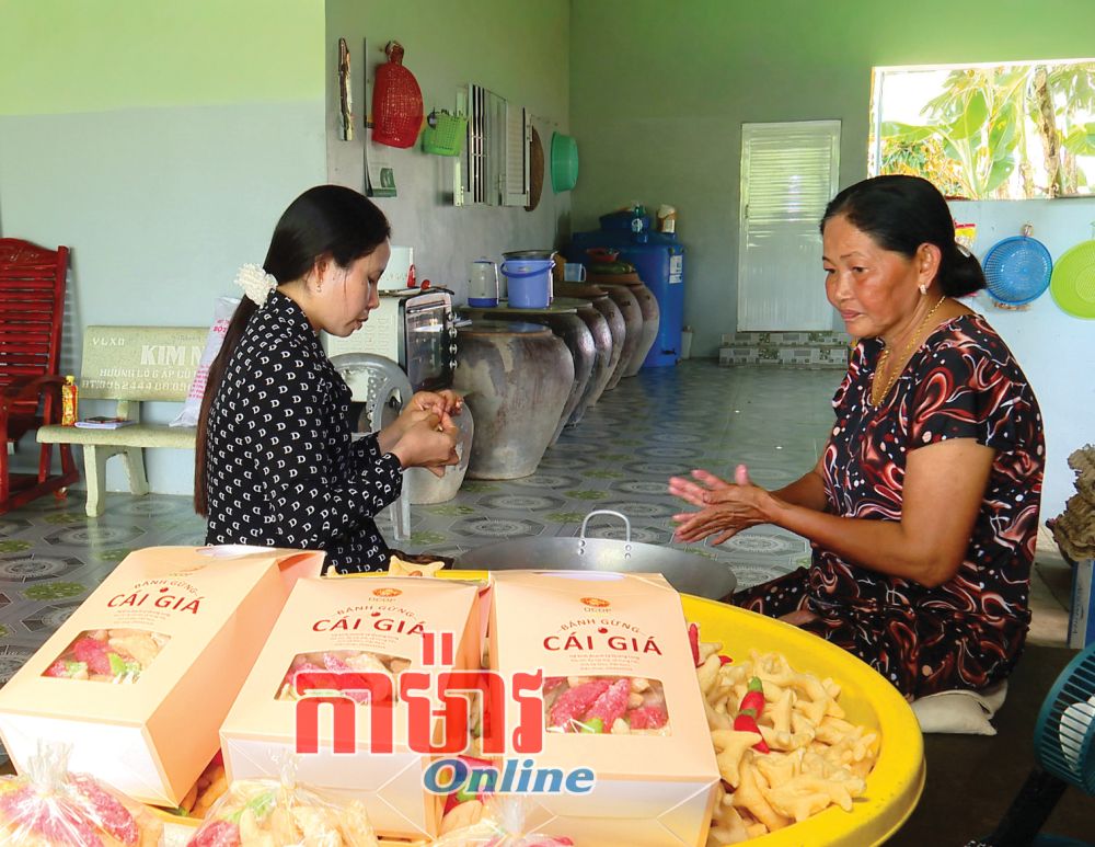 ក្នុងថ្ងៃជិតដល់បុណ្យចូលឆ្នាំថ្មី គ្រួសារអ្នកមីង Thạch Thị Phương នៅភូមិ Cái Giá ឃុំ Hưng Hội តែងមមាញឹកធ្វើនំខ្ញីប្រពៃណី។
