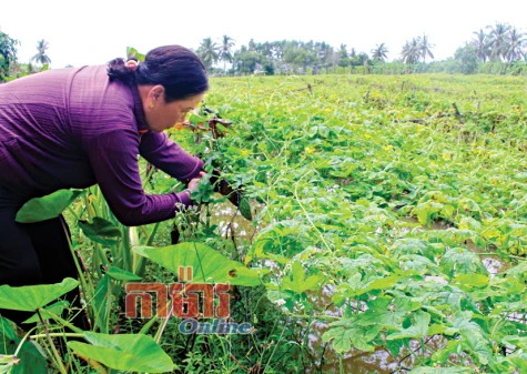 ក្រៅពីផលិតស្រូវ អ្នកមីង Quách Thị Kim Luông ថែមទាំងឆ្លៀតយកផ្ទៃដីសម្រាប់ដាំបន្លែ និងចិញ្ចឹមត្រី បង្កើនប្រាក់ចំណូលទៀតផង។
