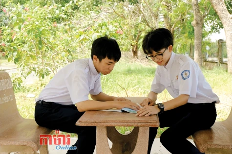 Tấn Hưng (ខាងឆ្វេង) និង ភូហឹងតែងបង្កភាពស្និទ្ធស្នាលជាមួយគ្នាក្នុងការរៀនសូត្រ។