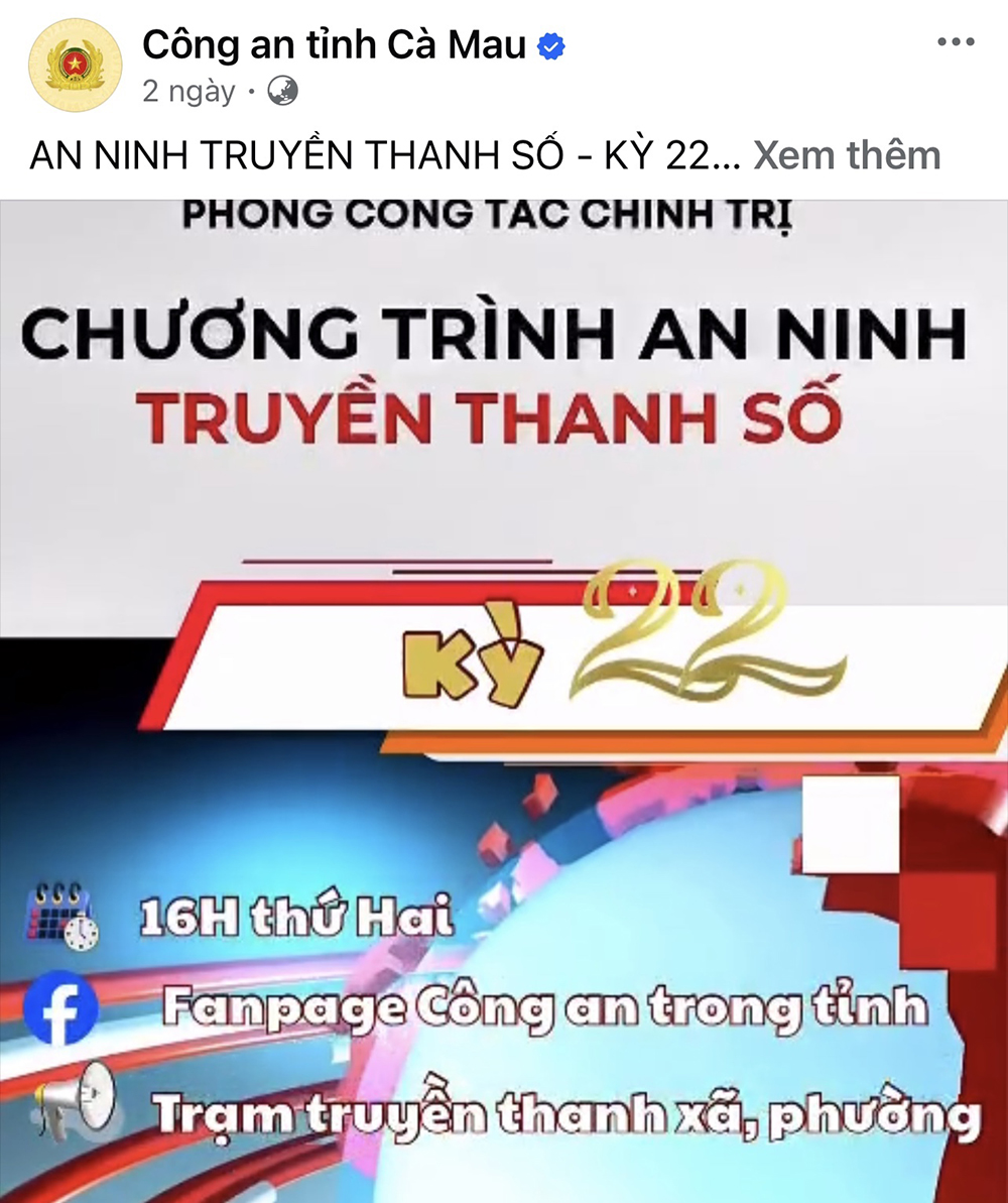 Chương trình “An ninh truyền thanh số” được đăng tải trên Fanpage Công an tỉnh Cà Mau.