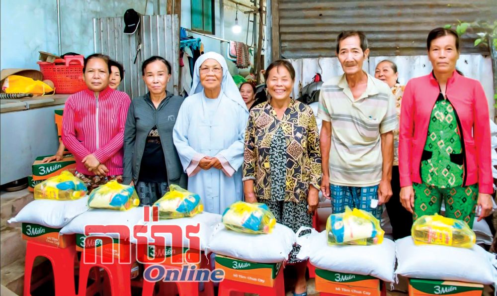 ភិក្ខុនី ង៉ោដាវ អនុប្រធានប្រចាំការគណៈសប្បុរសធម៌សមាគមពុទ្ធសាសនាខេត្ត Cà Mau ជូនអំណោយដល់ប្រជាជនដែលជួបលំបាកនៅលើភូមិសាស្ត្រសង្កាត់ Láng Tròn។ រូបថត៖ សមាគមពុទ្ធសាសនាខេត្ត Cà Mau។