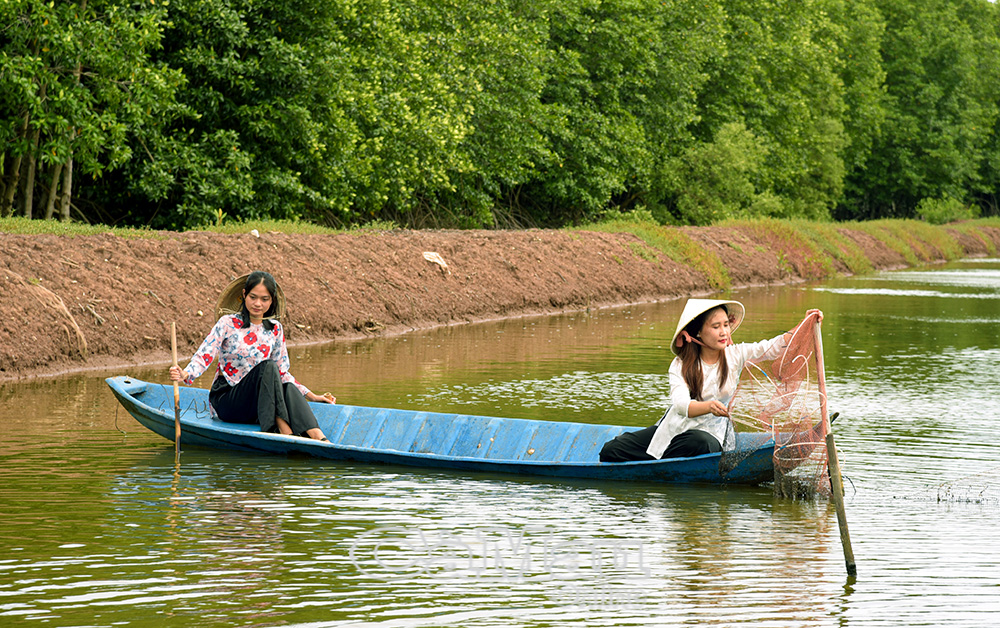 Tham quan bên trong rừng phòng hộ bằng xuồng.