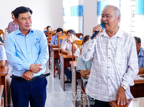 Ông Tô Văn Hai, khóm Cây Trâm, Phường Tân Thành nêu vướng mắc về chính sách BHXH với cán bộ BHXH tỉnh.