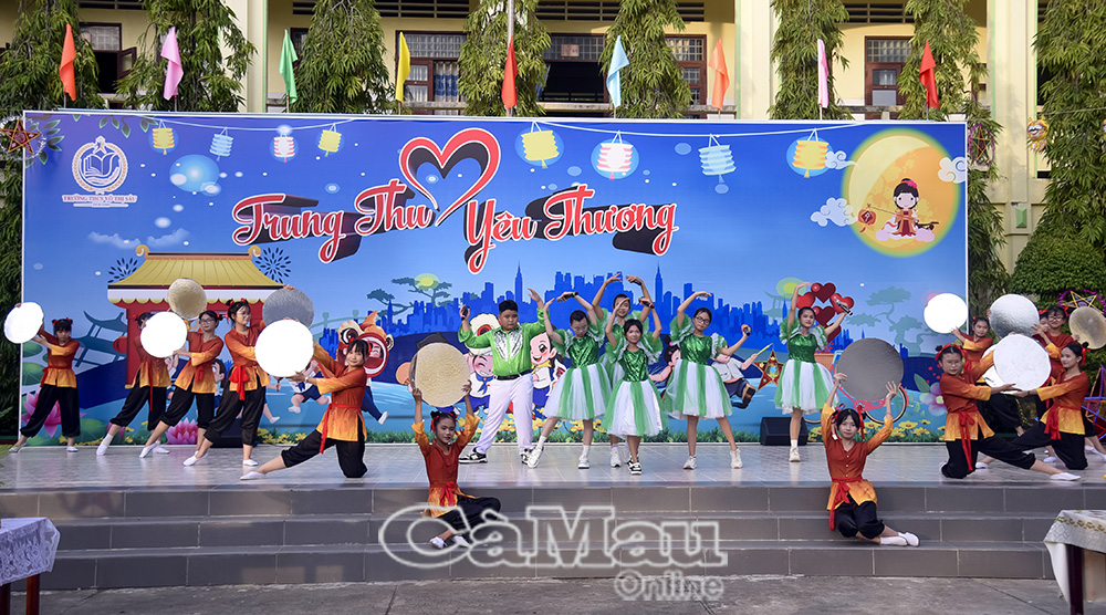 Tiết mục văn nghệ đặc sắc về Tết Trung thu do học sinh biểu diễn.