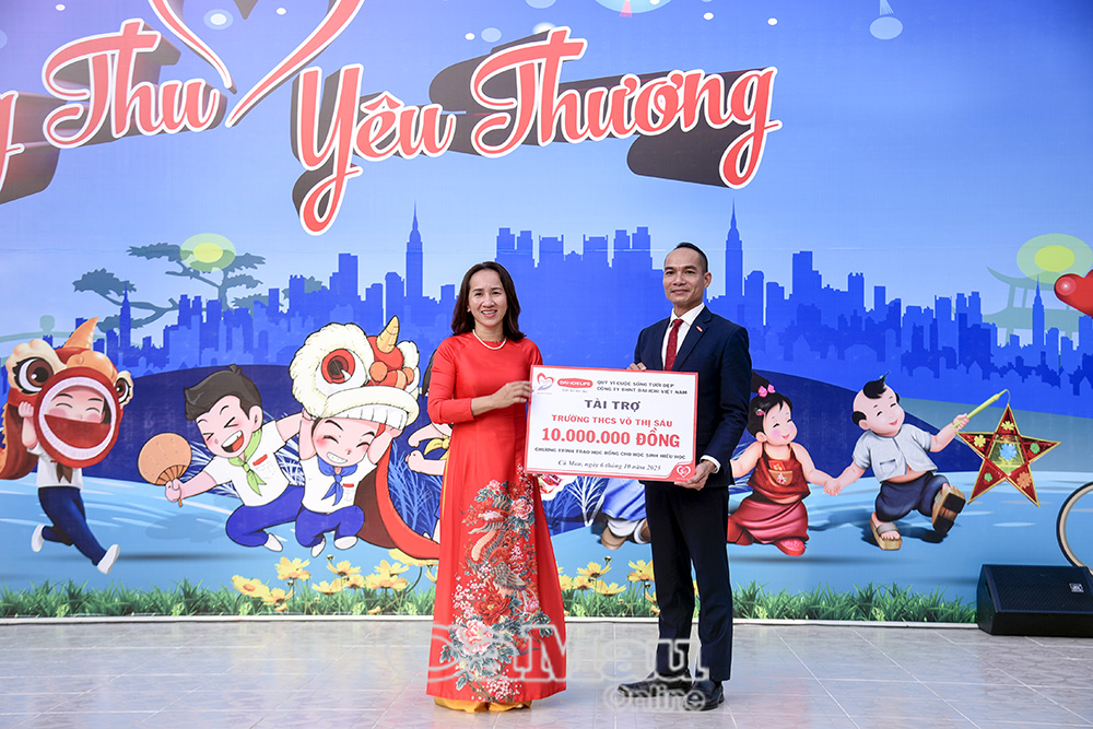 Phát biểu tại chương trình, bà Trần Kim Thi, Bí thư Chi bộ, Hiệu trưởng Trường THCS Võ Thị Sáu, chia sẻ: “Chương trình Trung thu yêu thương là hoạt động giàu ý nghĩa, mang đến cho học sinh niềm vui và sự ấm áp trong ngày Tết Thiếu nhi, đồng thời góp phần gìn giữ, phát huy những giá trị văn hoá truyền thống của dân tộc. Đặc biệt, việc vận động các em cùng đóng góp quà tặng cho bạn có hoàn cảnh khó khăn giúp giáo dục tinh thần sẻ chia, lòng nhân ái, để Tết Trung thu thật sự trở thành ngày hội của tình yêu thương.”
