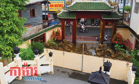 ខ្លោងទ្វារវិហារបុរាណ Hải Nam គយគន់ពីលើវិហារ។