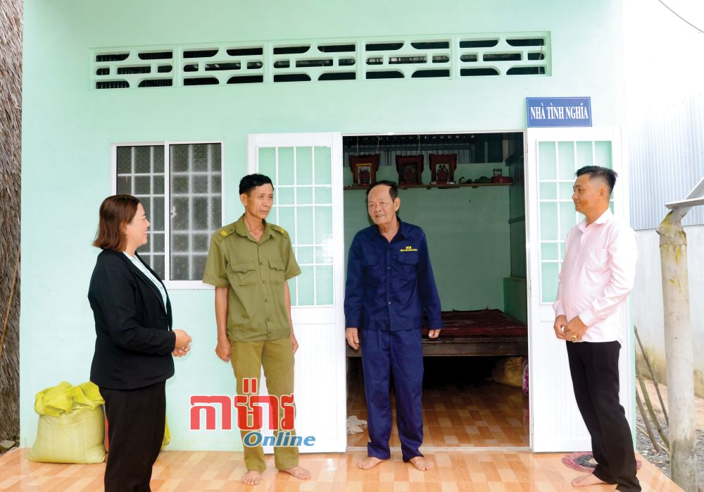 លោក Pham Văn Chiến (ទីពីរគិតពីស្តាំ) ក្នុងផ្ទះតបស្នងគុណដែលភូមិភាគបានឧបត្ថម្ភសាងសង់ ។