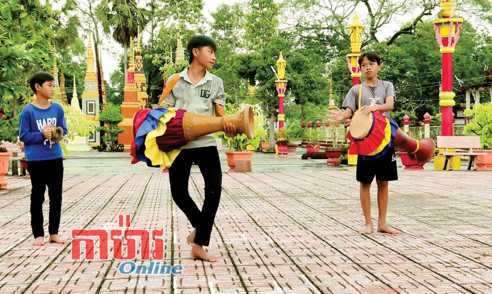 ក្រុមភ្លេងពិណពាទ្យនារីវត្ត កាយខ្វាង (Dì Quán) ហាត់សមបម្រើពិធីបុណ្យទាន។