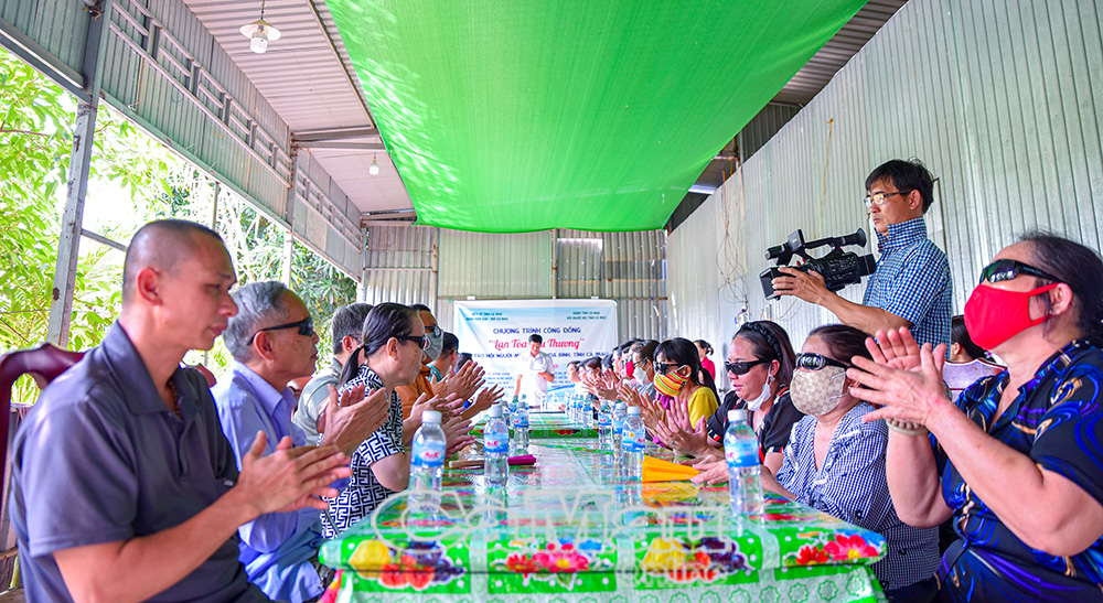Những tràng pháo tay phấn khởi khi cơ sở nhận được sự hỗ trợ nhân Ngày truyền thống Hội Người mù Việt Nam (17/4).