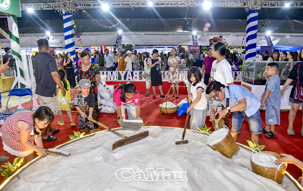 Người dân và trẻ em trải nghiệm tại không gian trưng bày muối.