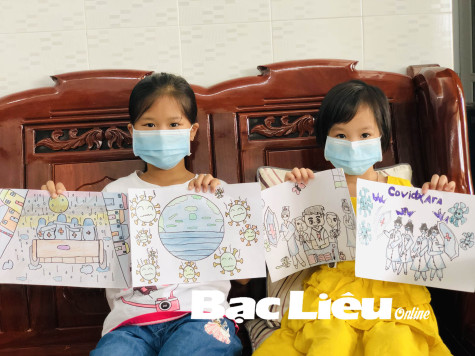 Hai chị em Thảo Nghi và Thảo Nhiên (Khu dân cư Phường 5, TP. Bạc Liêu) đã vẽ nhiều bức tranh sáp màu với chủ đề phòng, chống dịch COVID-19. Cha của hai bé thường xuyên vắng nhà để cùng các cô chú trong cơ quan “đi tiêu diệt COVID-19”. Những lúc vắng cha, các bé ước mong dịch bệnh sớm qua mau để có cha ở nhà chơi cùng mình. Bé Thảo Nghi sang năm học mới sẽ là học sinh lớp 5 Trường tiểu học Kim Đồng, khi được mẹ gợi ý chủ đề để vẽ là hăng hái ngay với công việc “tuổi nhỏ làm việc nhỏ” cùng cha chống dịch, em tự chọn bố cục, chất liệu, màu sắc để khởi động phần việc nhỏ của mình.