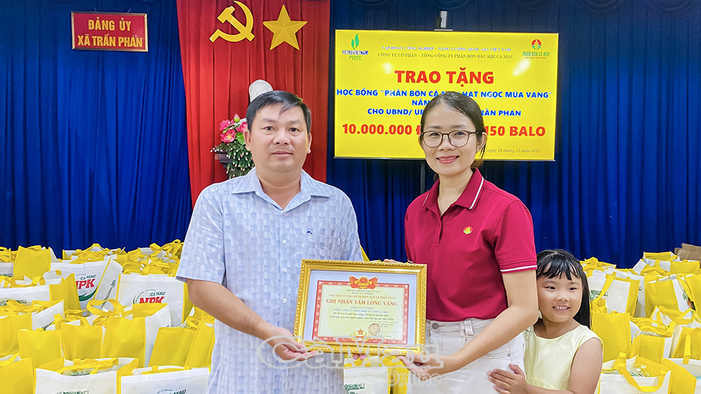 Phát biểu tại buổi lễ trao quà, ông Lê Trọng Vũ, Phó Chủ tịch UBND xã Trần Phán, trân trọng cảm ơn tấm lòng vàng của tập thể cán bộ, nhân viên Công ty Cổ phần - Tổng Công ty Phân bón Dầu khí Cà Mau. Trong nhiều năm qua, Phân bón Cà Mau luôn là đơn vị tiên phong, đồng hành cùng địa phương trong các công tác an sinh xã hội, góp phần thực hiện tốt mục tiêu giảm nghèo và khuyến học khuyến tài.