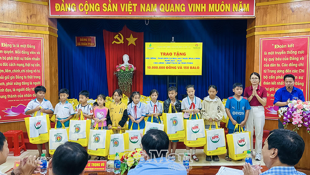 Dịp này, nhà tài trợ cũng trao 20 suất học bổng và 150 ba lô cho các em học sinh nghèo vượt khó học giỏi trên địa bàn xã Trần Phán.