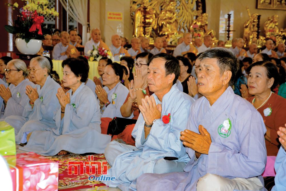 មាមីងពុទ្ធបរិស័ទនាំគ្នាសូត្រធម៌ថ្វាយព្រះដោយក្តីគោរពក្នុងឱកាសបុណ្យ Vu Lan។