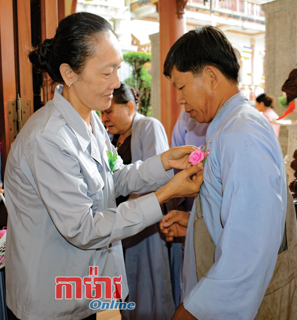ពិធីបំពាក់ផ្កាកុលាបជូនពុទ្ធបរិស័ទ។