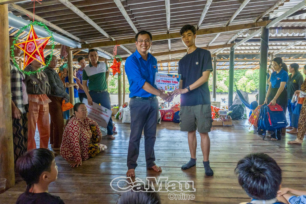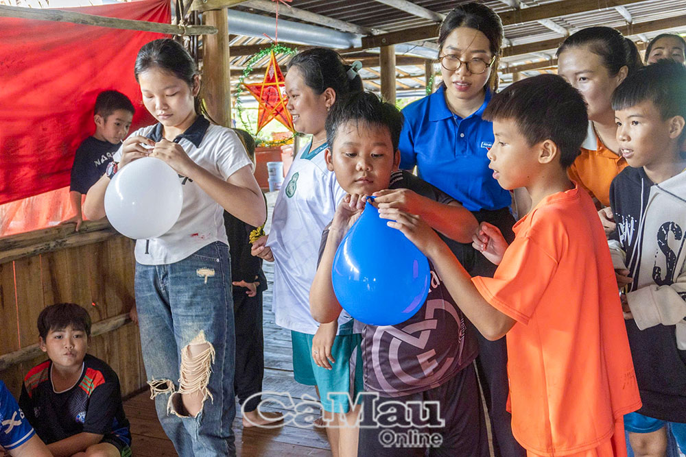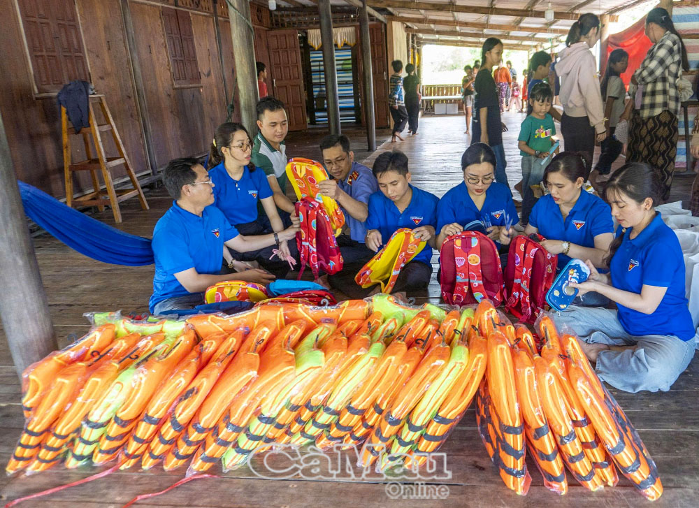 Niềm vui tiếp tục lan toả khi năm thứ 10 chương trình được tổ chức, với hơn 30 em nhỏ tham gia, vừa nhận quà vừa chơi những trò chơi tập thể. Ðồng hành cùng Chi đoàn Báo và Phát thanh, Truyền hình Cà Mau trong năm nay, Ðoàn cơ sở Bệnh viện Sản - Nhi Cà Mau đã hỗ trợ các bé uống thuốc xổ giun; Nhóm thiện nguyện Trái tim xanh - Sài Gòn, Vietcombank Chi nhánh Cà Mau và một số cơ sở đoàn đóng góp kinh phí tặng các phần quà gồm ba lô, dụng cụ học tập, quà bánh. Ðặc biệt, những chiếc áo phao tiếp tục được gửi tặng như món quà thường niên, để trẻ thêm an toàn đường đến trường mỗi ngày.