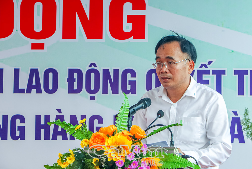 Đồng chí Lâm Văn Bi, Phó Chủ tịch Thường trực UBND tỉnh Cà Mau, biểu dương tinh thần lao động của các lực lượng thi công xuyên lễ, xuyên đêm trên công trường dự án mở rộng, nâng cấp Cảng hàng không Cà Mau.