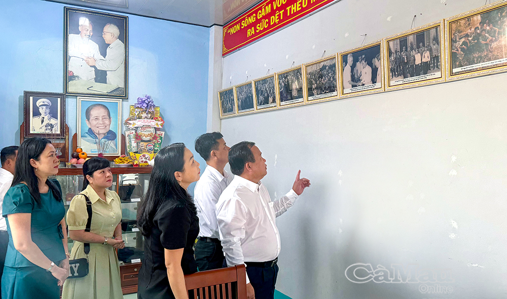 Phó Chủ tịch UBND tỉnh Nguyễn Minh Luân tham quan Phòng truyền thống Nguyễn Thị Được, Bí thư Chi bộ đầu tiên của xã Phong Thạnh Tây từ năm 1938 (nay là xã Phong Thạnh, tỉnh Cà Mau), nguyên Phó Chủ tịch Trung ương Hội Liên hiệp Phụ nữ Việt Nam.