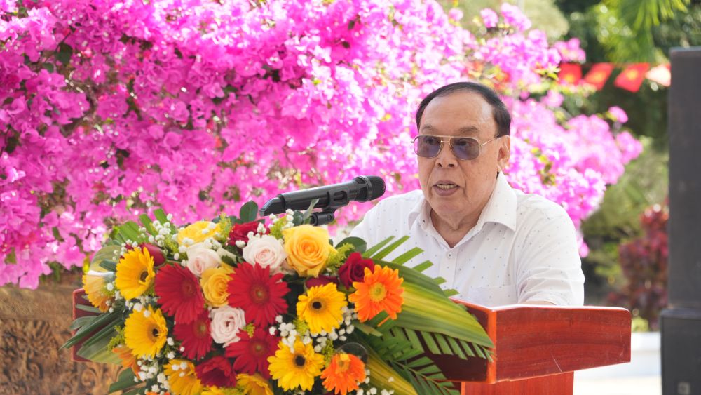 Đồng chí Phạm Thạnh Trị, nguyên Chủ tịch UBND tỉnh, phát biểu ôn lại truyền thống cách mạng vùng căn cứ Xẻo Đước.