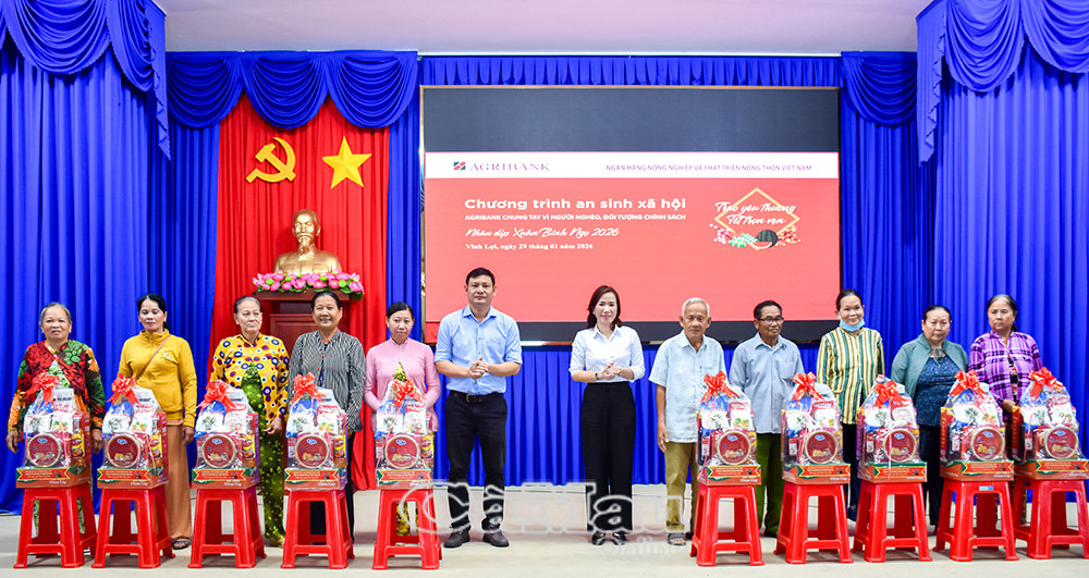 Báo Cà Mau Chiều 29/1, UBND xã Vĩnh Lợi phối hợp với Agribank chi nhánh Bạc Liêu và Agribank chi nhánh Vĩnh Lợi - Bạc Liêu tổ chức Chương trình trao quà Tết Nguyên đán Bính Ngọ 2026 cho các đối tượng trên địa bàn xã.