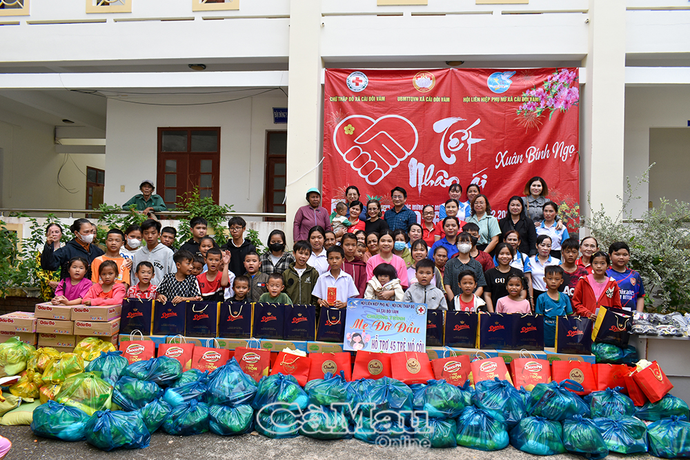 Ban Tổ chức đã trao quà cho 46 trẻ mồ côi đang được hỗ trợ theo Chương trình “Mẹ đỡ đầu”. Trong đó, Uỷ ban MTTQ Việt Nam tỉnh Cà Mau vận động trao tặng mỗi em 500.000 đồng tiền mặt; xã Cái Đôi Vàm vận động các nhà hảo tâm trao thêm mỗi em một phần quà trị giá trên 800.000 đồng, giúp các em đón Tết ấm áp, đủ đầy hơn.