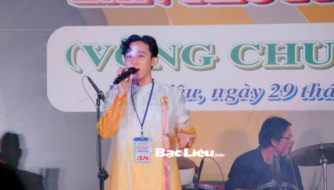Thí sinh Lê Thành Ngươn (huyện Vĩnh Lợi) - đoạt giải Nhất tại Liên hoan Tiếng hát đất và người Bạc Liêu lần thứ I.