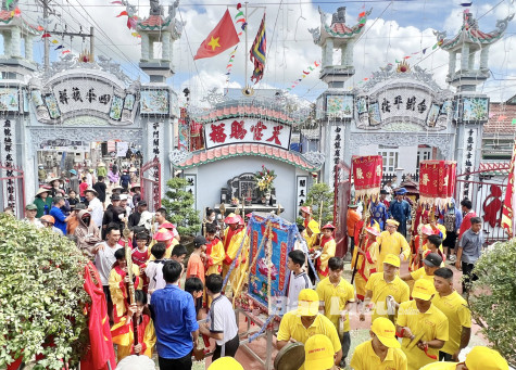 Lễ hội Kỳ yên tại đình Vĩnh Mỹ thu hút cộng đồng các dân tộc anh em Kinh - Khmer - Hoa ở địa phương tham gia. Ảnh: H.T