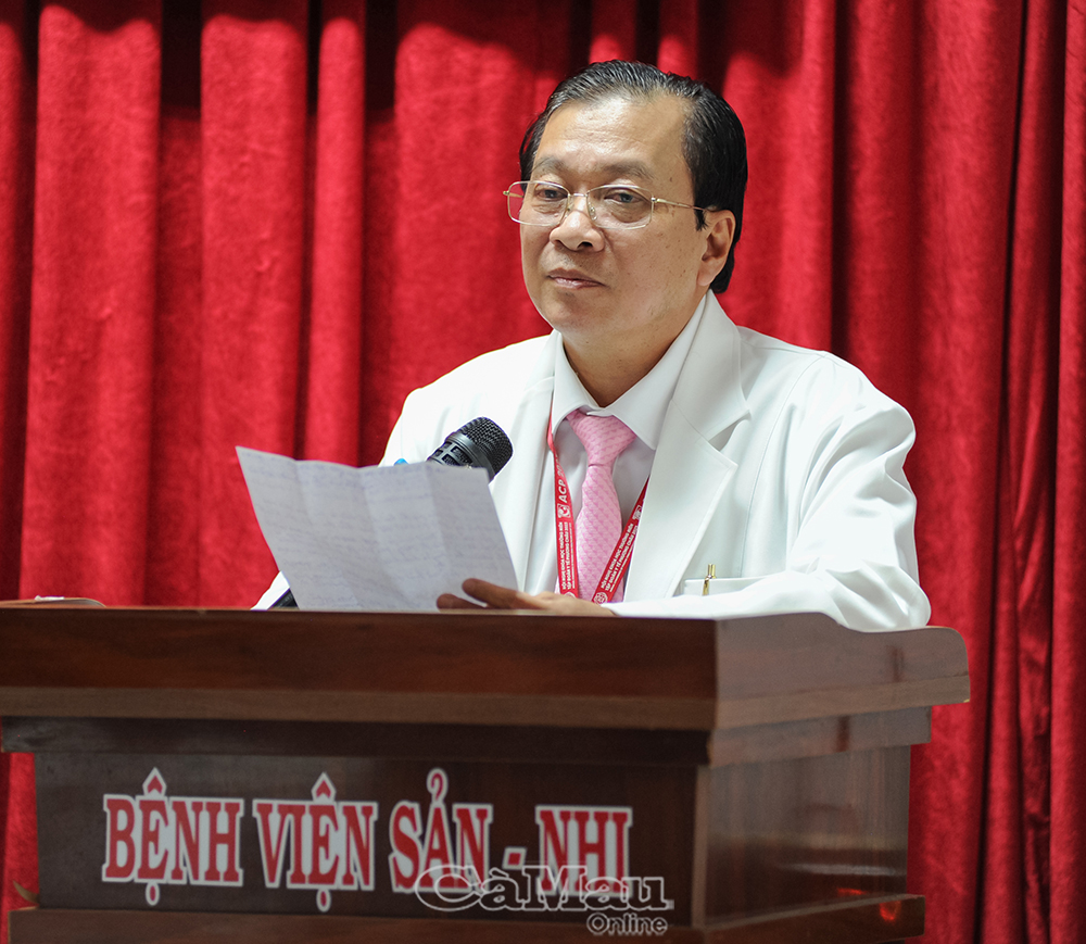 Bác sĩ CKII Trương Minh Kiển, tân Giám đốc Bệnh viện Sản - Nhi Cà Mau, phát biểu nhận nhiệm vụ.