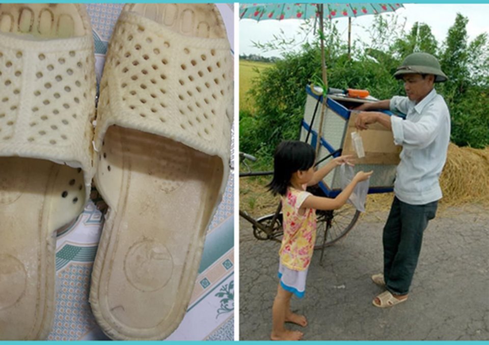 Dáng một người đàn ông đi bộ len lỏi qua từng ngõ xóm tiến gần. Cha gọi chú ấy vào, trên tay cha cẩn thận cầm đôi dép đứt hôm bữa đưa ra để đổi lấy một cây cà-rem tỏa làn khói mát lạnh đưa cho tôi. Nhìn tôi được thưởng thức vị cà-rem béo ngọt lành lạnh sảng khoái ngỡ như bao oi bức của nắng hè chợt tan biến, đôi mắt thâm sẫm của người cha vùng biển cơ cực ánh lên niềm hạnh phúc.