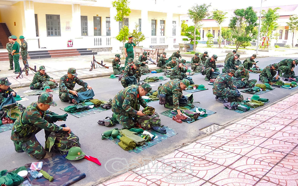 Kiểm tra việc sắp xếp quân tư trang chuẩn bị cho các hoạt động luyện tập