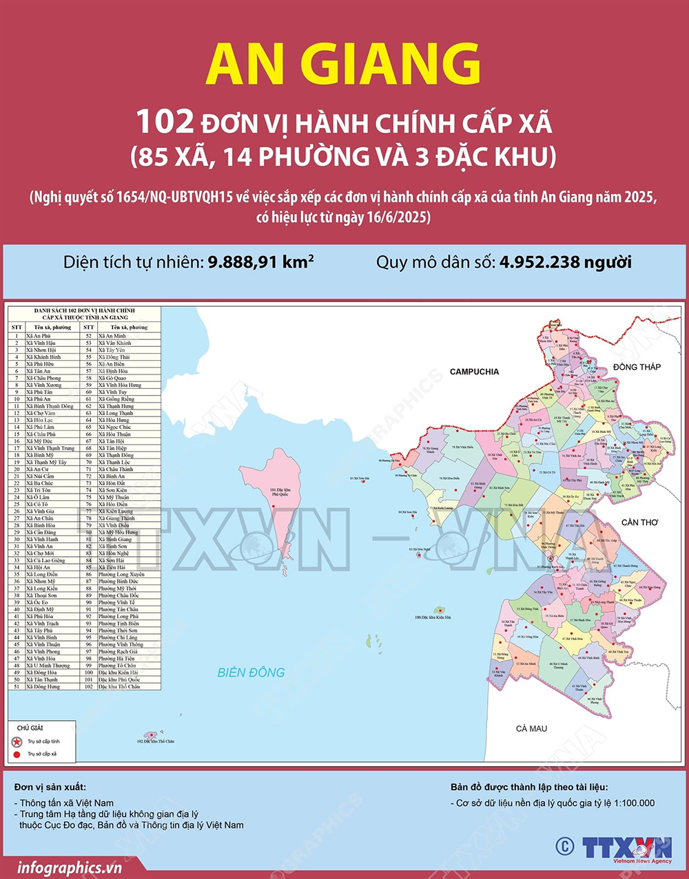 Bản đồ hành chính An Giang sau sáp nhập 2025 (Nguồn: Thông tấn xã Việt Nam)