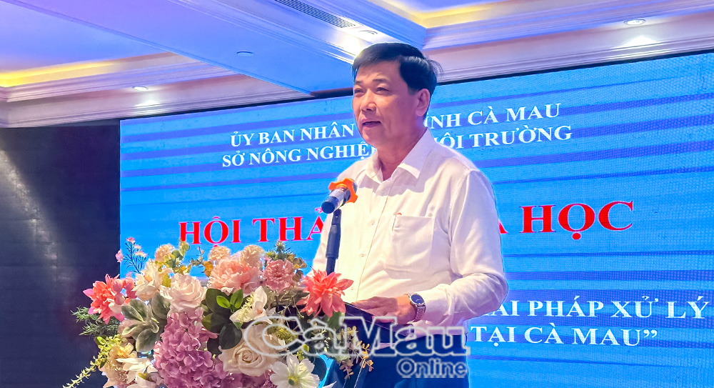 Ông Huỳnh Thanh Dũng, Phó Giám đốc Sở Nông nghiệp và Môi trường tỉnh Cà Mau, phát biểu tại hội thảo.