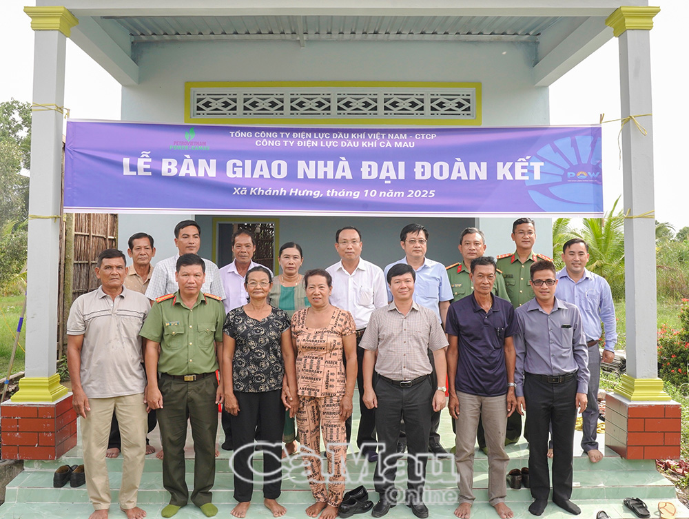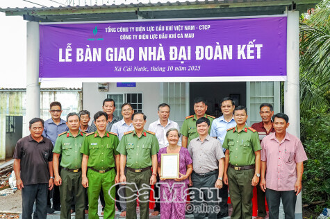 Báo Cà Mau Ngày 28/10, Công an tỉnh Cà Mau phối hợp với chính quyền địa phương và Công ty Điện lực Dầu khí Cà Mau tổ chức bàn giao 2 căn nhà Đại đoàn kết cho hộ nghèo có hoàn cảnh đặc biệt khó khăn về nhà ở tại xã Cái Nước và xã Khánh Hưng.