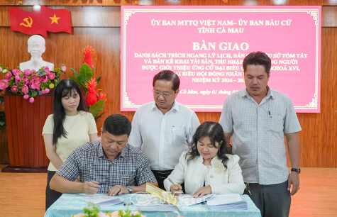 Báo Cà Mau Chiều tối 1/2, Uỷ ban Bầu cử tỉnh Cà Mau tổ chức hội nghị bàn giao hồ sơ những người ứng cử đại biểu Quốc hội khoá XVI và đại biểu HĐND tỉnh, nhiệm kỳ 2026-2031 cho Ban Thường trực Uỷ ban MTTQ Việt Nam tỉnh Cà Mau.