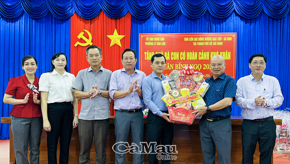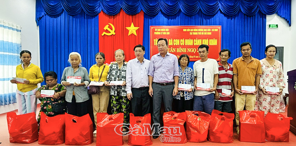 Sáng 31/1, UBND Phường Lý Văn Lâm phối hợp với Ban Liên lạc Đồng hương Bạc Liêu - Cà Mau tại TP Hồ Chí Minh (Ban liên lạc) tổ chức trao quà Tết cho các hộ nghèo, hộ cận nghèo và gia đình có hoàn cảnh khó khăn trên địa bàn phường.