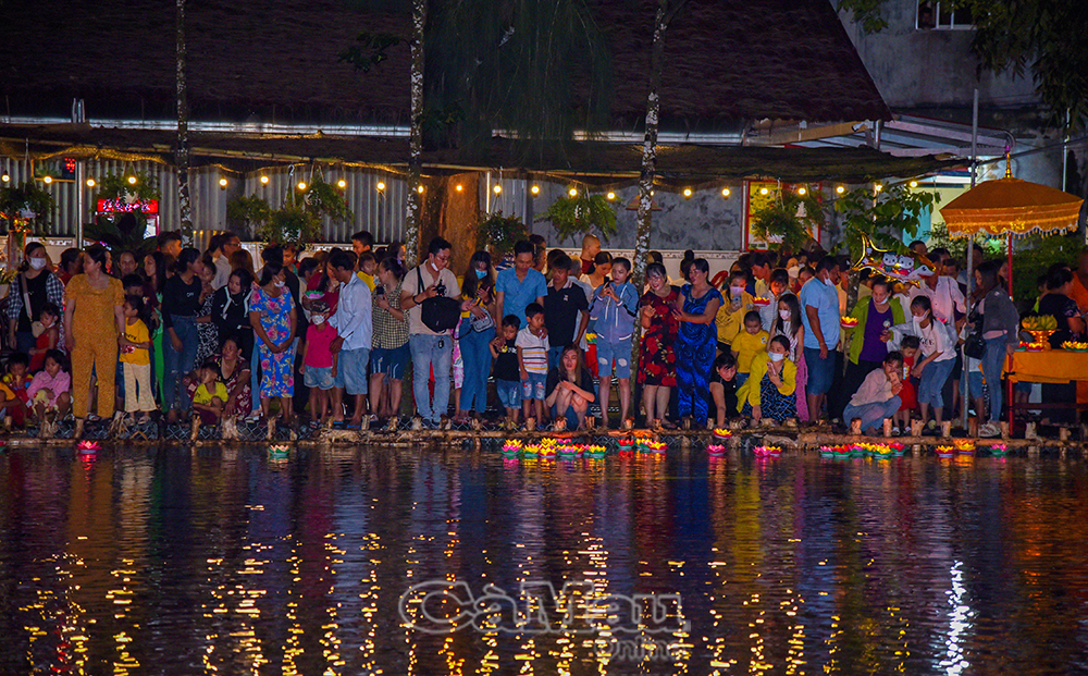 Nghi thức thả đèn nước trong lễ hội Ok Om Bok.