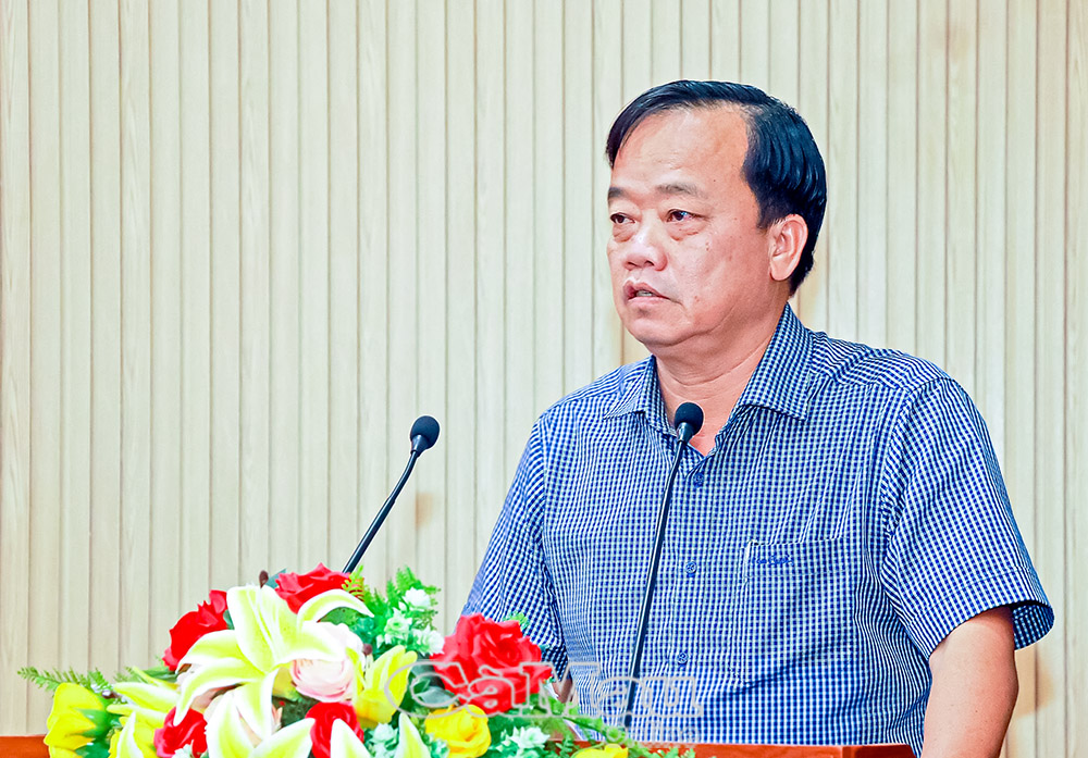 Đồng chí Huỳnh Quốc Việt, Phó Bí thư Thường trực Tỉnh uỷ, Chủ tịch Uỷ ban MTTQ Việt Nam tỉnh thông báo nhanh kết quả Hội nghị Trung ương.