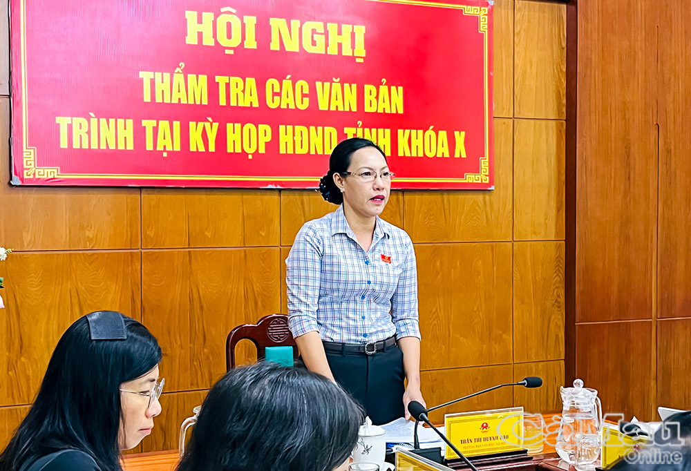 Phó Trưởng Ban Văn hoá - Xã hội HĐND tỉnh Nguyễn Phương Loan góp ý các báo cáo được thẩm tra.