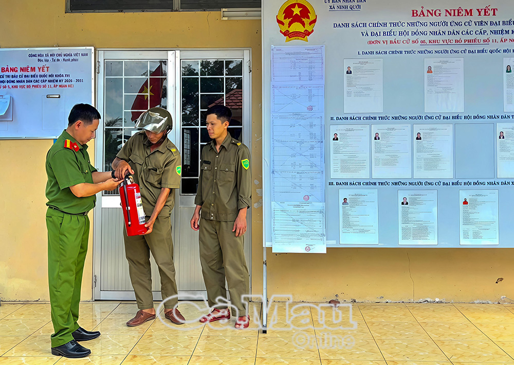 “Ðể đảm bảo an toàn PCCC&CNCH, tại các điểm bầu cử trên địa bàn xã, Công an xã Ninh Quới đã xây dựng Kế hoạch số 18/KH-CAX-CSKV về việc kiểm tra PCCC&CNCH, tại các khu vực bỏ phiếu. Theo đó, Tổ Cảnh sát khu vực đã tiến hành kiểm tra công tác PCCC&CNCH, tại 20 khu vực bỏ phiếu trên địa bàn. Tập trung vào việc duy trì hoạt động của các phương tiện, hệ thống PCCC&CNCH, hệ thống điện phục vụ PCCC, nguồn nước chữa cháy theo quy định. Ðồng thời, hướng dẫn sử dụng thiết bị PCCC tại các khu vực bỏ phiếu, duy trì khoảng trống phục vụ hoạt động PCCC&CNCH, giải pháp thoát nạn, ngăn cháy, chống cháy lan, chống khói tại các điểm bầu cử”, Trung tá Danh Nhận, Trưởng Công an xã Ninh Quới, cho biết.