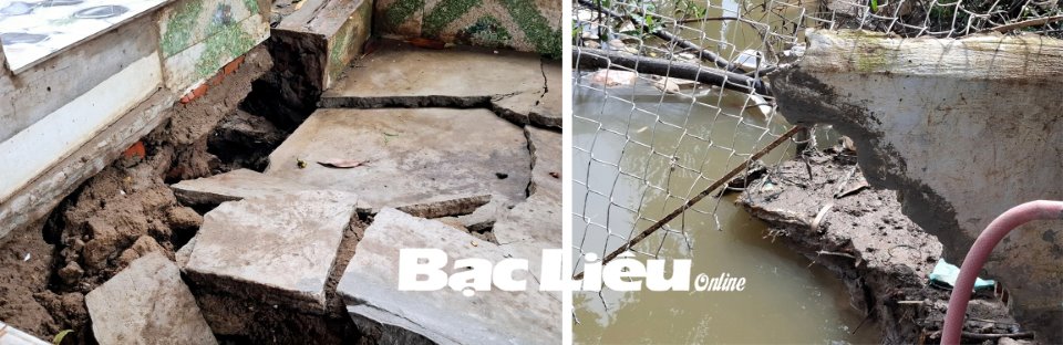 Chị Huỳnh Thị Út Nhỏ (đường Lê Thị Hồng Gấm, khóm 6, Phường 5, TP. Bạc Liêu) là một trong những hộ bị ảnh hưởng nặng nề của đợt sạt lở lần này. Chị Nhỏ cho biết: “Tối đó khoảng 23 giờ, cả nhà đã ngủ say, khi nghe tiếng động lớn, giật mình tỉnh giấc thì toàn bộ khu vực nhà sau bị chìm xuống sông”.