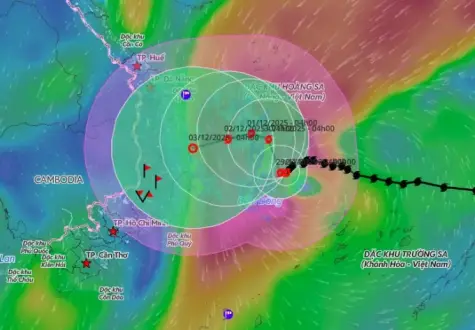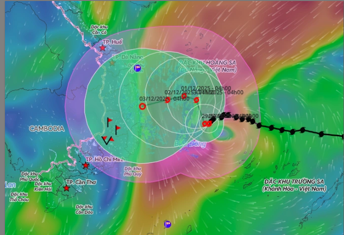 Đến 4h ngày 1/12, bão trên vùng biển tây bắc của giữa Biển Đông, cách vùng bờ biển phía đông tỉnh Gia Lai khoảng 210 km về phía đông, sức gió cấp 9, giật cấp 12 và theo hướng tây bắc với tốc độ 3-5 km/h.