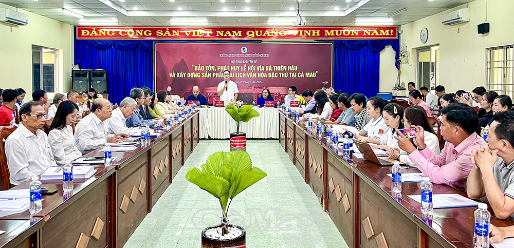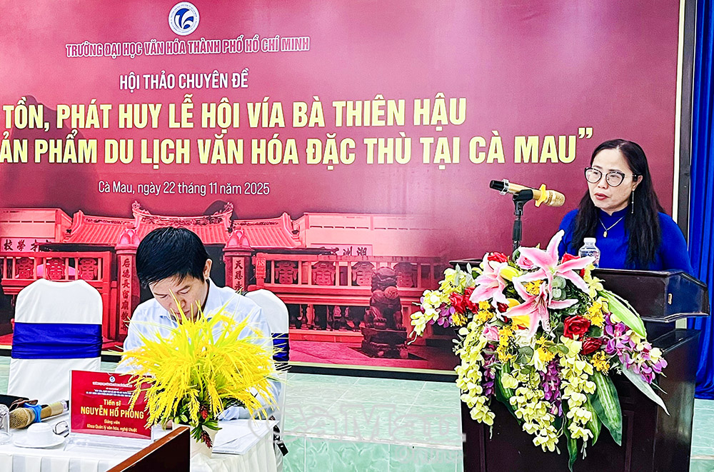 Chiều 22/11, Trường Đại học Văn hóa TP Hồ Chí Minh phối hợp với Bảo tàng Cà Mau tổ chức Hội thảo chuyên đề “Bảo tồn, phát huy Lễ hội Vía Bà Thiên Hậu và xây dựng sản phẩm du lịch văn hóa đặc thù tại Cà Mau”.