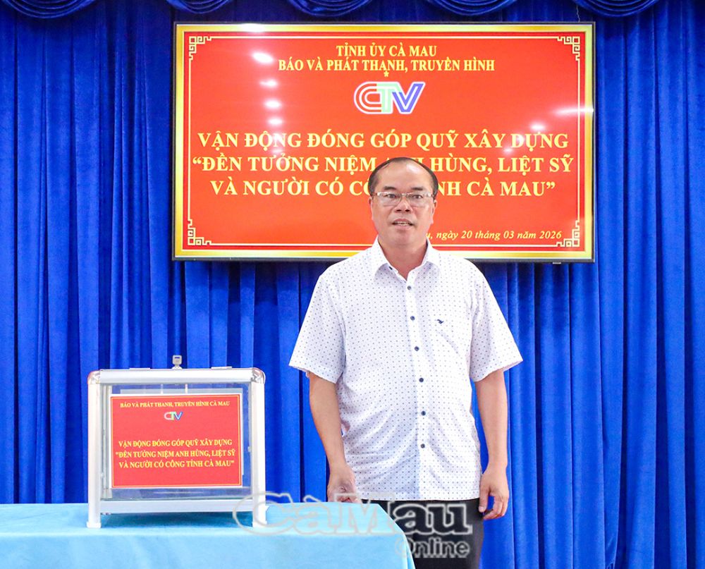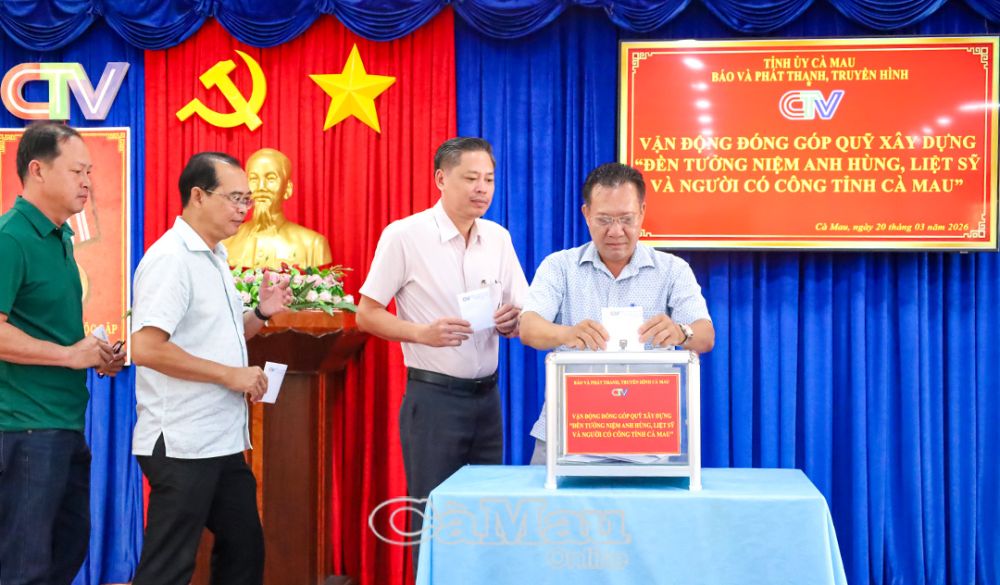 Báo Cà Mau Sáng 20/3, Báo và phát thanh, truyền hình Cà Mau tổ chức lễ phát động toàn thể cán bộ, viên chức, người lao động trong đơn vị đóng góp ủng hộ Quỹ xây dựng Đền tưởng niệm Anh hùng liệt sĩ, người có công tỉnh Cà Mau.